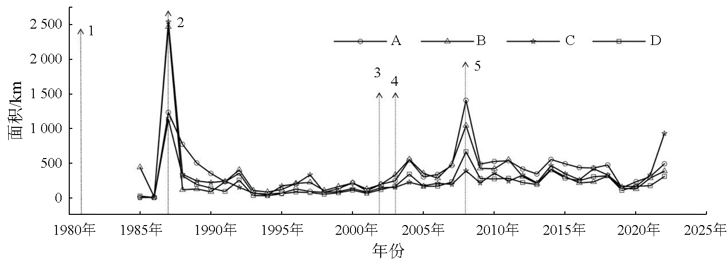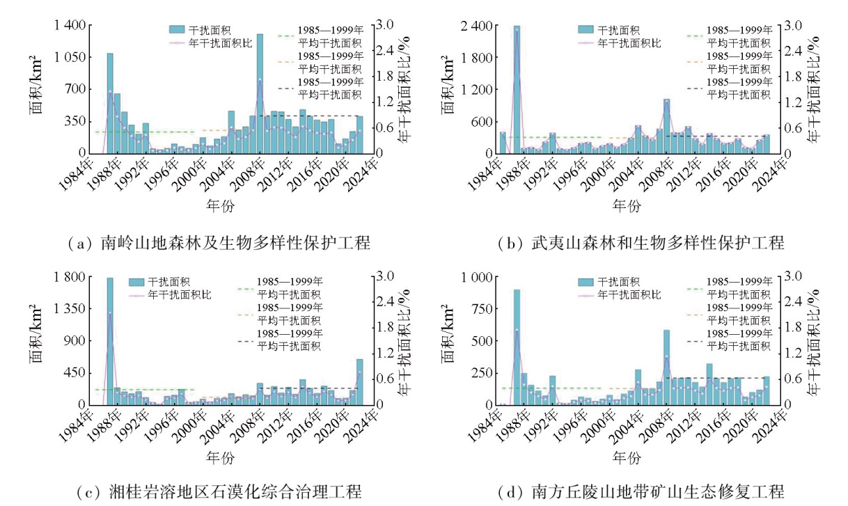 Fig.5  1985—2022年4个生态修复工程森林扰动年际变化特征