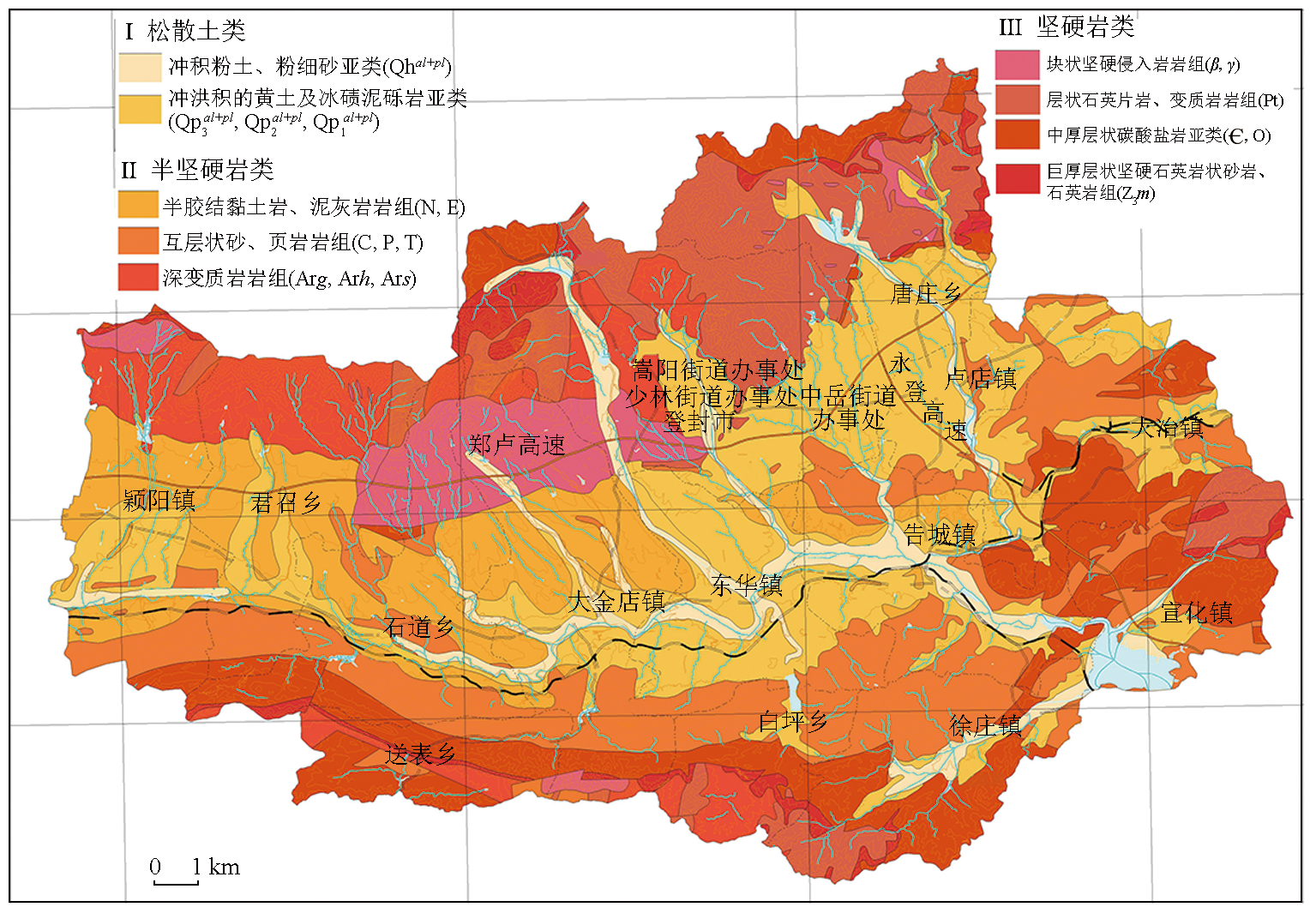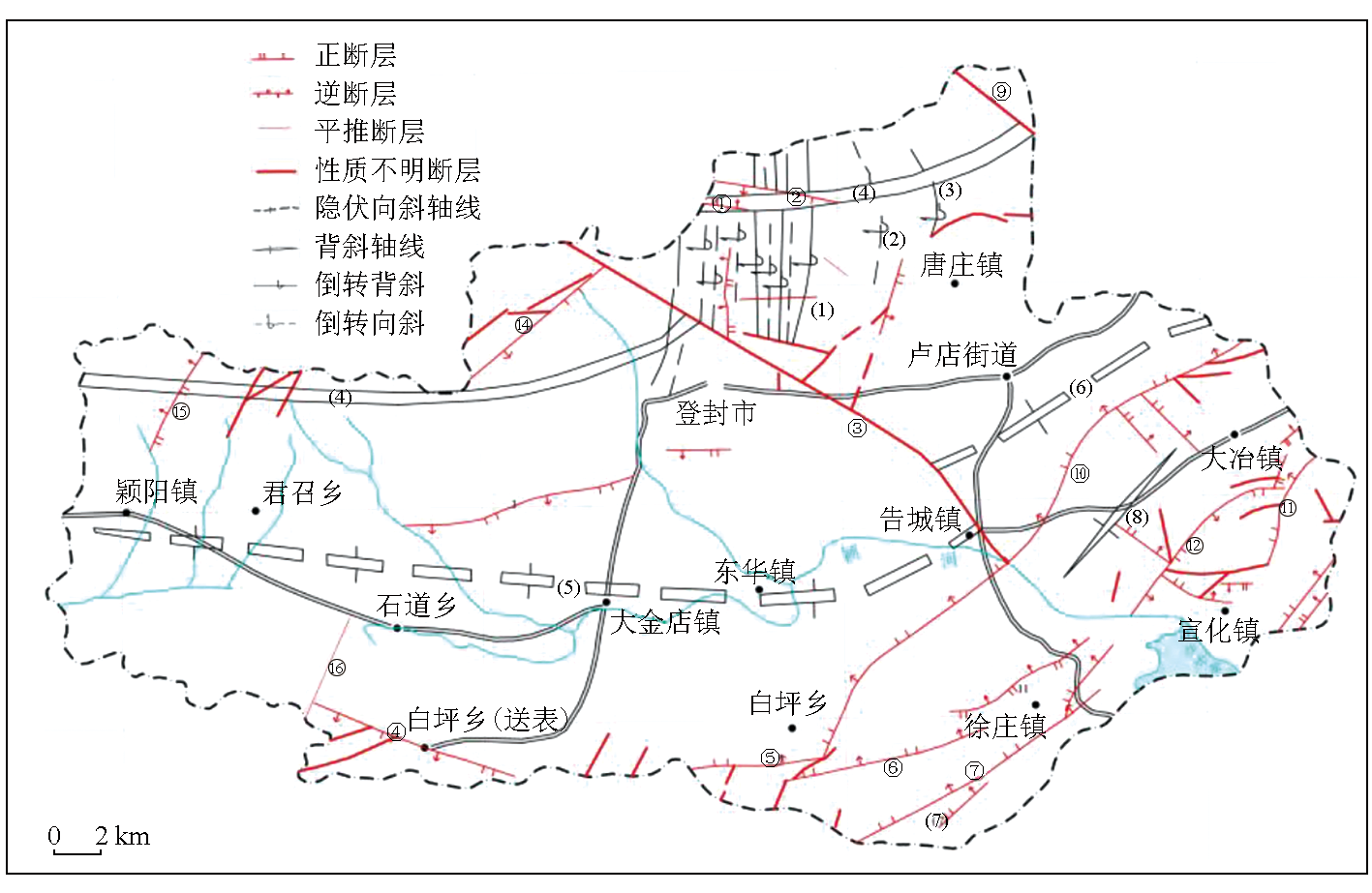 Fig.9  登封市褶皱和断裂构造