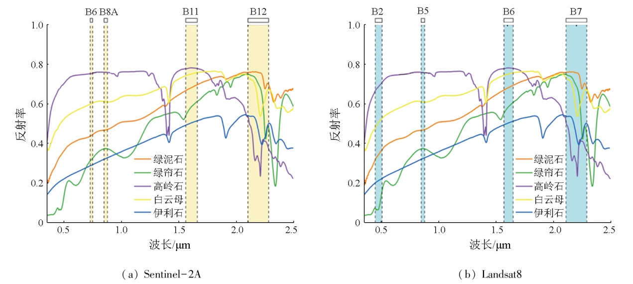 Fig.5  数据波段与典型羟基矿物光谱图