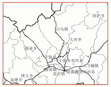 盐源盆地位于青藏高原东南缘, 雅砻江下游西岸, 北纬27° 22'~27° 49', 东经101° 9'45'~101° 46'之间, 面积约1 400 km2, 横跨盐源县的梅雨镇、盐井镇、卫城镇、双河乡、干海乡、下海乡、棉垭乡、大河乡、白乌镇及盐塘镇等10个乡镇所在地(图1)。