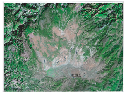本次调查所采用的遥感影像数据主要是2005年SPOT-5遥感数据。在对遥感影像进行正射纠正的基础上, 制作了1:5万标准分幅的影像地图(图2)。在野外踏勘的基础上, 建立了第四纪残积、残坡积、坡积等成因类型的遥感识别影像标志。采用人机交互解译和野外调查验证相结合的方式, 结合盐源盆地区的基础地质环境、气候、水资源等条件, 完成了区内第四纪残坡积层的分析研究和土地资源潜力评估工作。