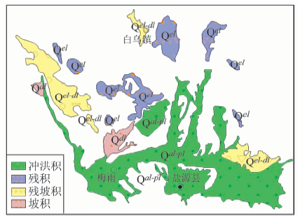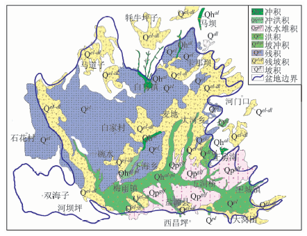 (3)残坡积。残积和坡积之间存在较为密切的关系, 残积可经机械搬运作用后成为坡积。由于西南地区地貌类型主要以高原山地地貌为主, 第四纪残坡积在河流宽谷两侧和断陷盆地周围面相对发育, 残积与坡积的界线较难区分, 因此将不易区分的地区统一圈定为残坡积。