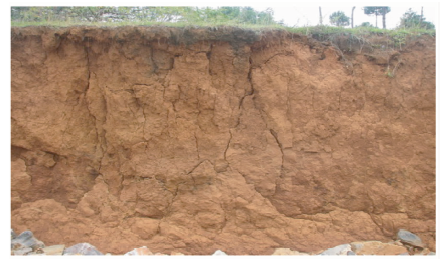 从整个岩石圈来看, 残坡积层属于风化作用的产物, 经过生物参与的成土作用, 可以形成土壤。植被的发育为土壤的形成提供了有利条件, 通常高等植物根系所分布的深度成土作用明显, 属土壤部分; 其下生物活动微弱, 则属于风化壳部分。土壤类型的形成除了受地形部位的影响, 还受发育时间和原岩矿物成分的影响[5]。第四纪以来, 由于西南地区的岩石一直处于不同程度的风化状态, 尤其是以中生界泥岩夹砂岩地层区, 第四纪残坡积层表层土壤厚度普遍较厚, 土壤类型以红壤为主, 具有第四纪残坡积层开发利用的基础条件。