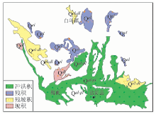 (2)坡积。坡积则是根据地貌位置标志划分的类型, 属于机械搬运作用的再沉积物。基岩风化后的碎屑经雨水、雪水或重力的搬运, 通常呈扇状或带状堆积在山区的斜坡、坡脚等部位, 其岩性与下部基岩无继承关系。坡积物的成分多种多样, 通常与高处的基岩成分有一定的关系, 分选作用差, 细小和粗大碎块常夹杂在一起。在重力作用下, 比较粗大的颗粒在靠近斜坡部位, 而细小的颗粒在离斜坡较远的地方。