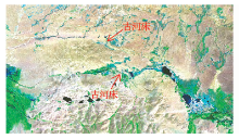 在上更新统上部层位之上所接受的另一类新的沉积属河流相沉积, 全新世时期于山前形成的冲洪积扇、沿现代河流出现的冲积和以它们为物质基础形成的其他类型沉积物特征在此不作讨论。全新世早期的沉积一般以古河道的形式不整合覆于上更新统之上(图3)。古河道在遥感图像上有其较为独特的标志(图4、图5), 沉积物以河床相砂砾石层为主, 漫滩相砂、含砾泥砂层次之, 具有较为典型的二元结构特征。
