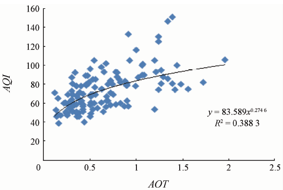 | Fig.8 Regression model of power function for AQI and AOT |