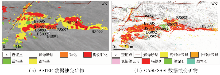 | Fig.13 Altered mineral information extracted from ASTER and CASI/SASI images in Number two verification area |