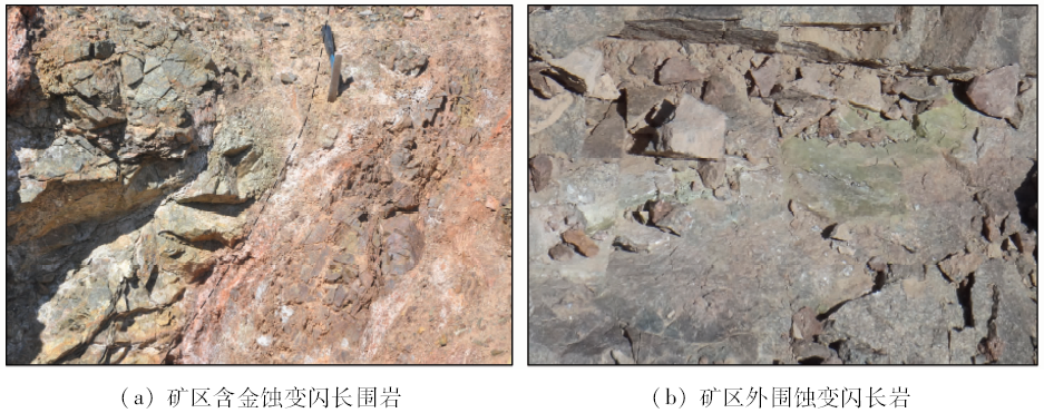 | 图4 明水河金矿区蚀变闪长围岩与外围绿帘石化闪长岩 |