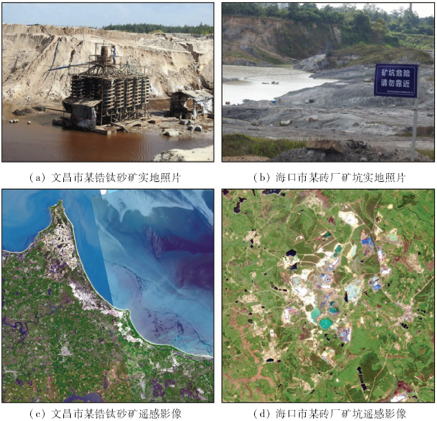 | 图2 矿山地质环境严重区野外实地照片及遥感影像示例 |
