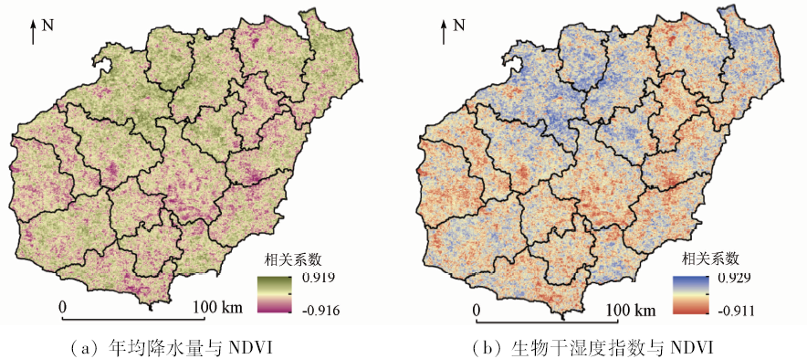 | 图2 主要气候指标与NDVI的空间相关性 |