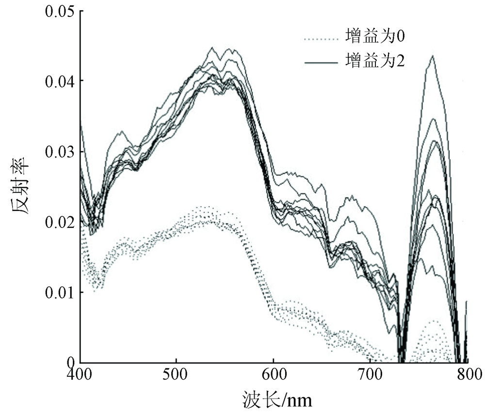 图9 不同增益下海水光谱曲线对比 |