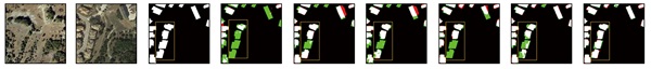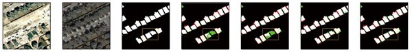 | 序号 | 影像A | 影像B | 标签 | FE-EF | FC-Siam- conc | FC-Siam- diff | BIT | SNUNet | FTUNet |