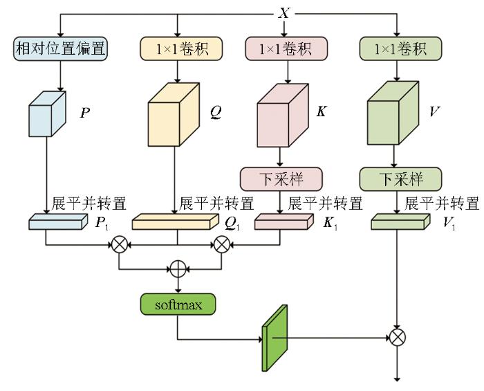 EMHSA模块通过对K和V进行下采样操作,将操作的复杂性从O(n2)显著降低到近似O(n);通过添加相对高度和宽度信息来使用二维相对位置编码,让像素间保持空间位置关系。
