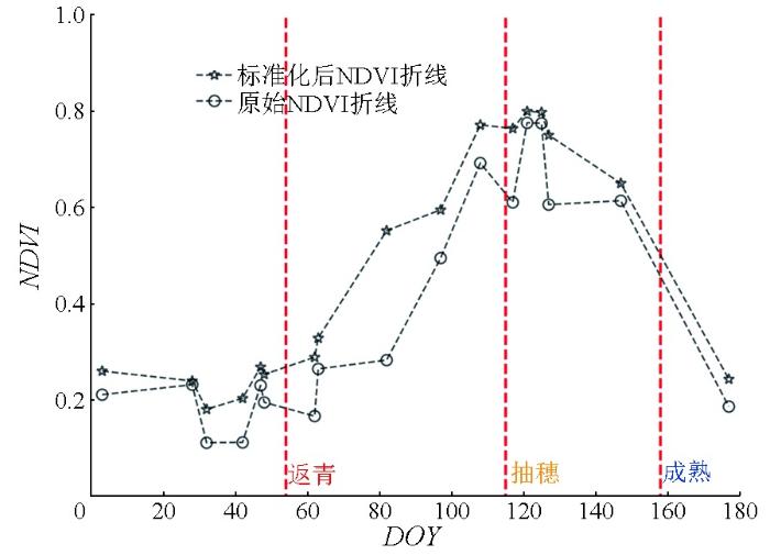 卫星反射率标准化前后冬小麦的NDVI时间序列图见图6。