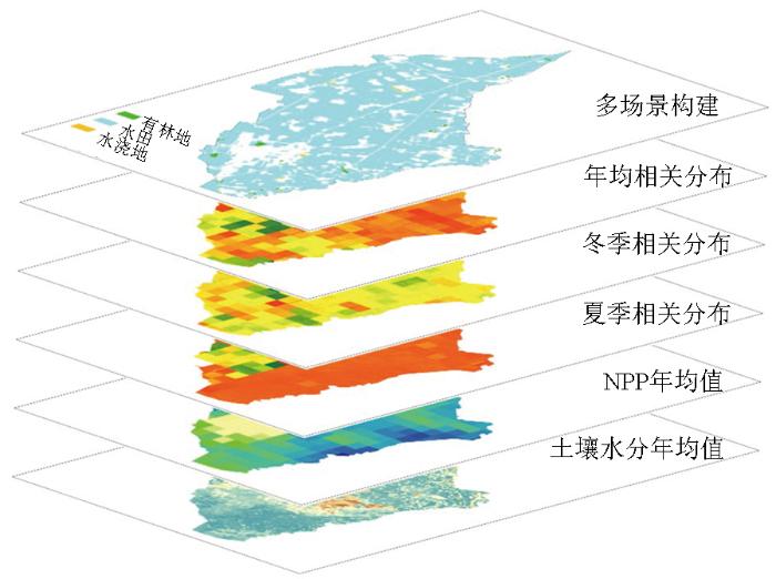 ... 针对高原灌区水资源时空分布不均匀、长时序高空间分辨率土壤水分数据缺乏的问题[18 ] ,本研究通过随机森林(random forest,RF)模型,将归一化植被指数(normalized difference vegetation index,NDVI)和地表温度(land surface temperature,LST)作为解释变量,将2019—2023年夏冬2季SMAP L4产品降尺度,获得1 km和30 m级分辨率的土壤水分分布数据;利用遥感数据解译地表水分指数(land surface water index,LSWI),并将其引入测算NPP的CASA模型中,形成修正水胁迫参数的CASA模型,量化分析研究期间夏冬2季NPP,构建有林地、水田、水浇地等不同的土地利用类型来定量评估土壤水分时空演变对研究区NPP的影响,以期解决以研究区为代表的高原灌区植被生长与用水关系的问题,以形成对研究区季节-空间角度土壤水分与NPP平衡关系的监测反馈机制. ...