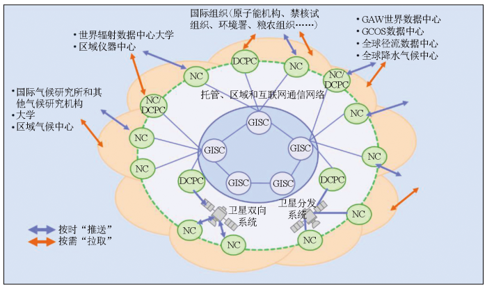 4)WIS的通信网络基于GTS的骨干电信网络构建。该网络连接所有GISC,并进一步联通各DCPC与NC,从而保障WMO信息系统的稳定运行,实现全球数据与产品的顺畅流通。