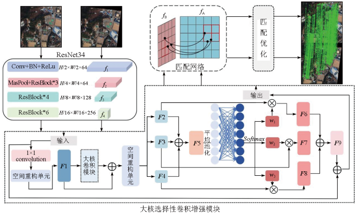 结合大核选择性卷积增强模块的遥感图像特征点匹配网络