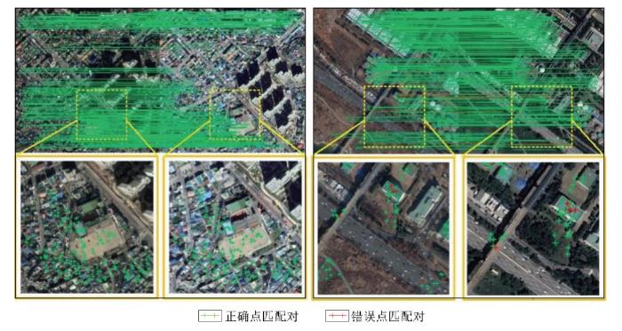 遥感图像特征点匹配旨在识别和建立不同时间或视角下遥感图像中同名像点的对应关系,这一过程为后续遥感图像的变化检测与分析[1 -2 ] 、图像融合[3 ] 和图像拼接及配准[4 ] 等工作提供了重要依据。然而,在实际场景中,遥感图像中的地物场景具有多尺度、纹理相似以及复杂多变等特点,可能会造成误匹配,甚至无法匹配等问题。