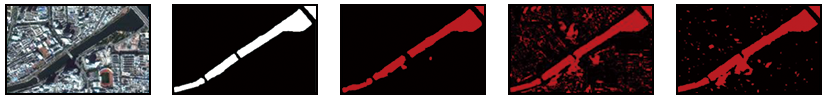3)综合4个不同类型区域的提取结果可知,改进的DeepLabV3plus模型在各类复杂环境中提取水体出色,尤其在抑制建筑物阴影、捕捉细小水体和区分周围复杂地物的能力上,相较于传统的NDWI和面向对象法有显著提升,展现了模型较好的鲁棒性。