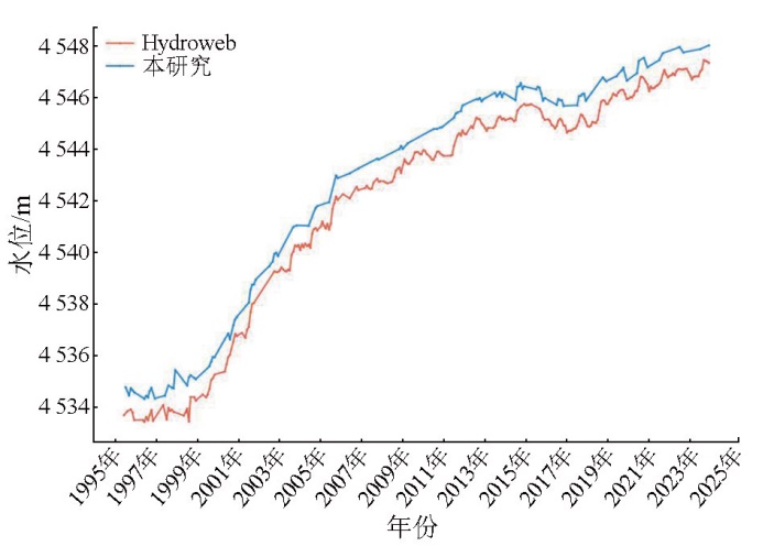 | 图5 1995—2023年色林错卫星测高数据与Hydroweb数据水位比较 |