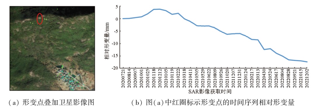 | Fig.19 Temporal sequence of relative deformation magnitude of the point marked by red circles in figure(a) in Wangao Village, Xiangshan County |