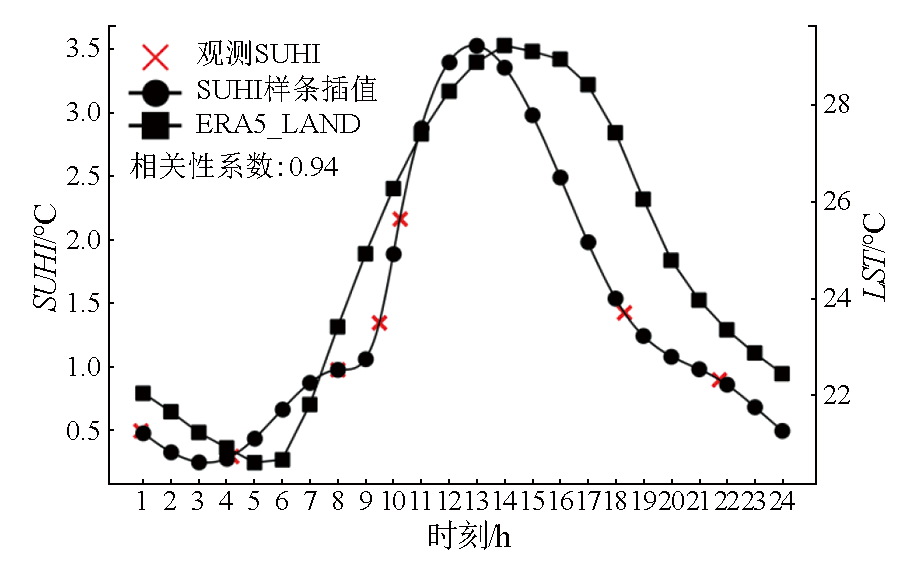 | 图4 ERA5-LAND温度变化与日内SUHI温度插值比较 |