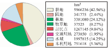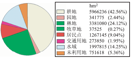 经遥感调查统计, 安徽省国土总面积为14 017 044 hm2, 土地利用结构如图1所示。
