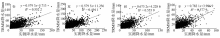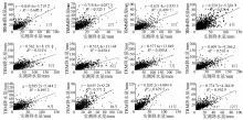 | 图8 1998— 2013年TRMM降水与地面观测站各月平均降水量散点图Fig.8 Scatter diagrams between average monthly precipitation observed by TRMM and rain gauges from 1998 to 2013 |