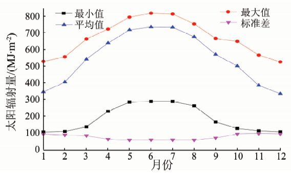 | 实验样区月度太阳辐射量统计特征 |