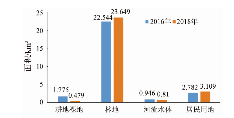 | 图11 2016—2018年研究区土地利用类型面积变化 |