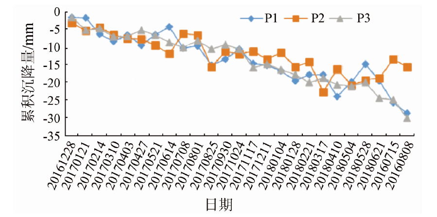 | Fig.17 P1,P2 and P3 cumulative settlement |