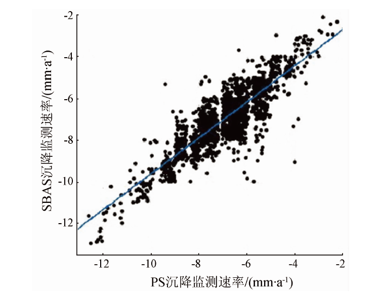 | 图8 PS与SBAS方法监测沉降速率相关性 |