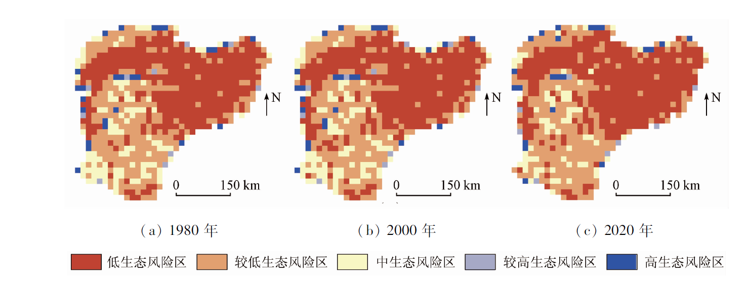 | 图4 研究区1980—2020年生态风险等级分布 |
