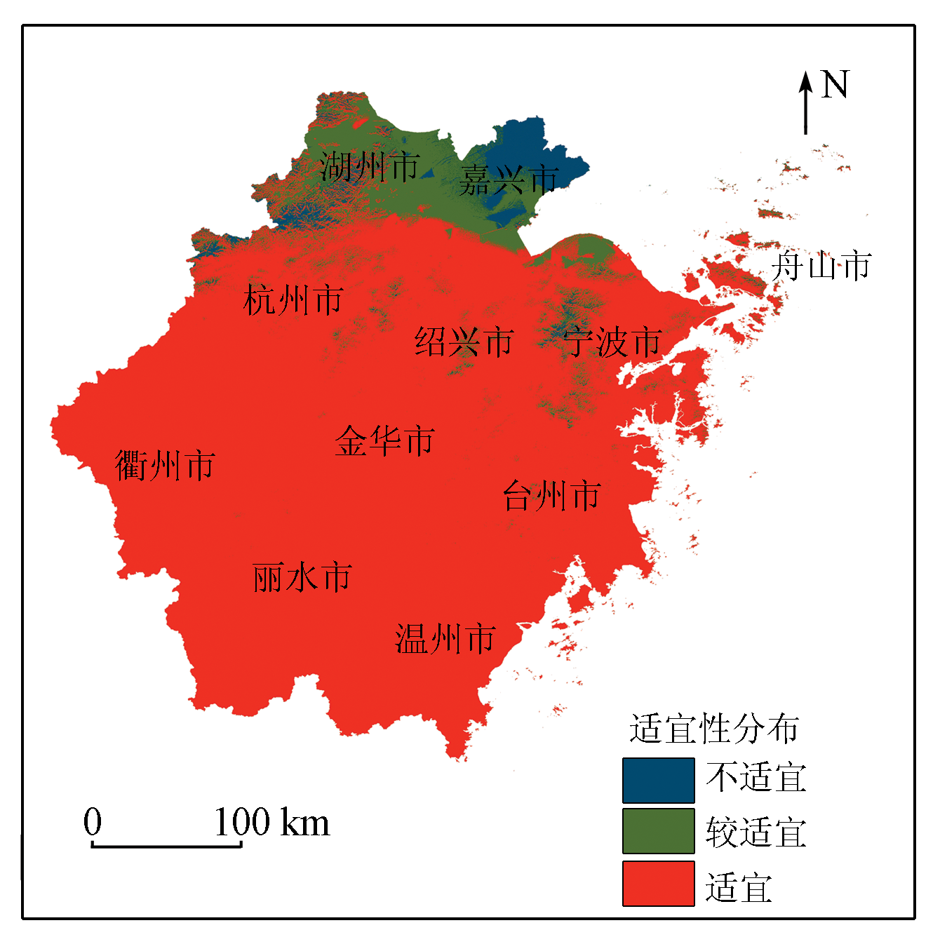 | 图4 杨梅种植的气候适宜性分布 |