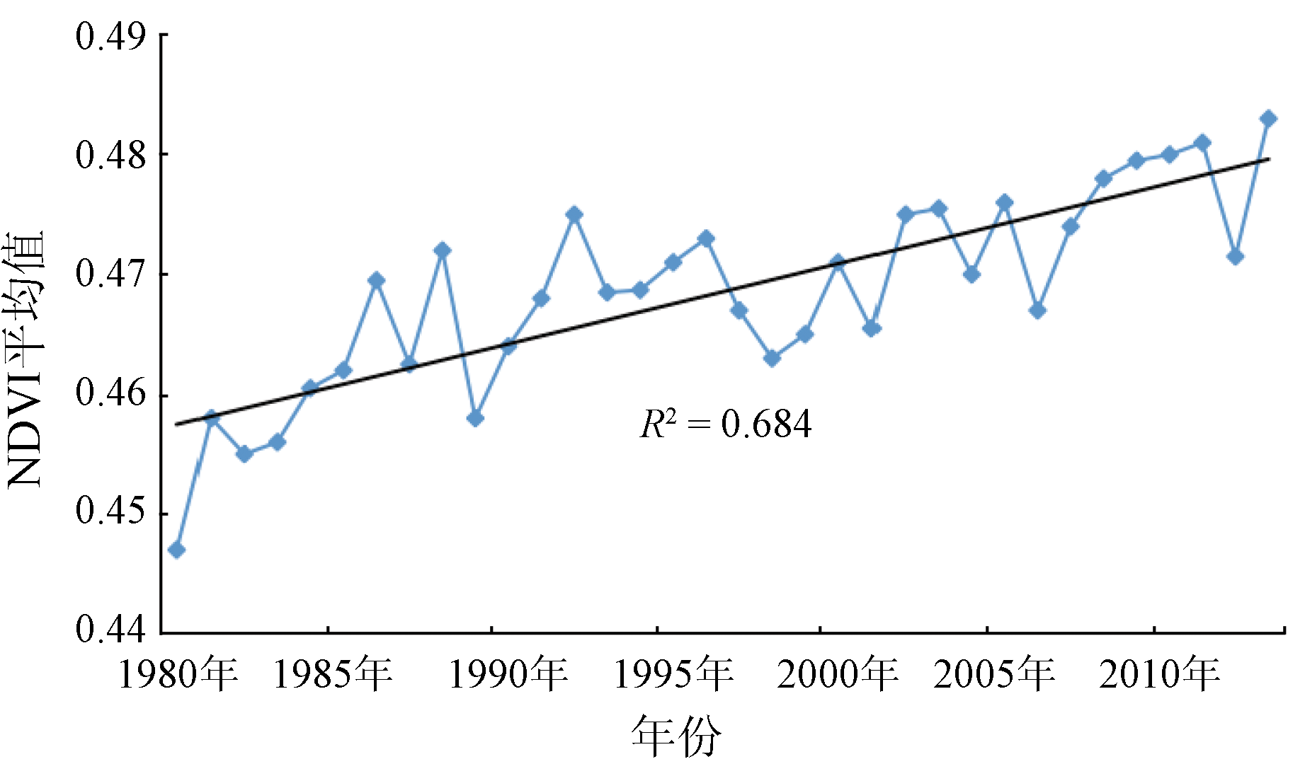 1982—2015年亚洲年均NDVI时间序列变化