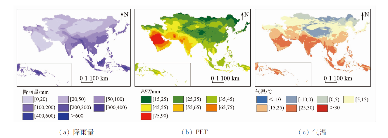 1982—2015年亚洲年均气候因子分布
