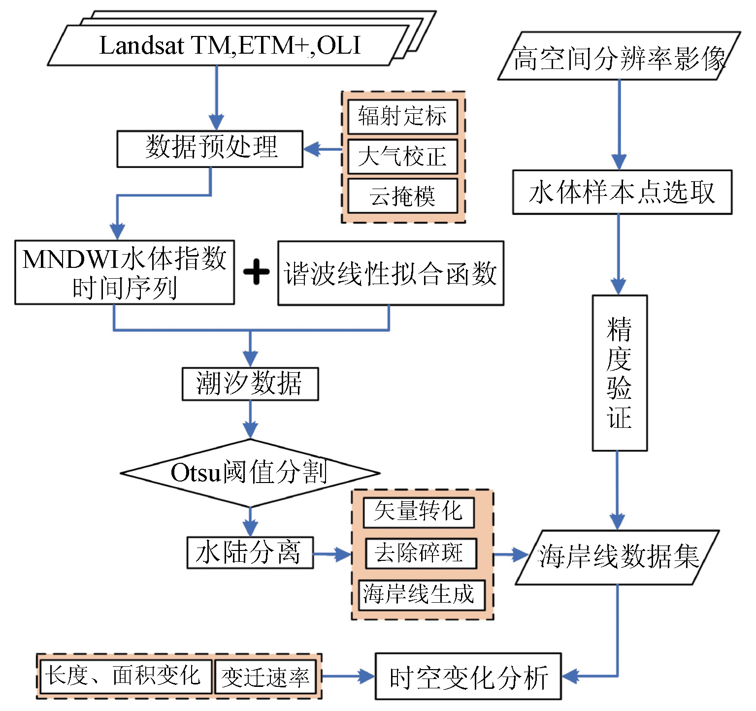 | 图2 海岸线提取技术路线 |