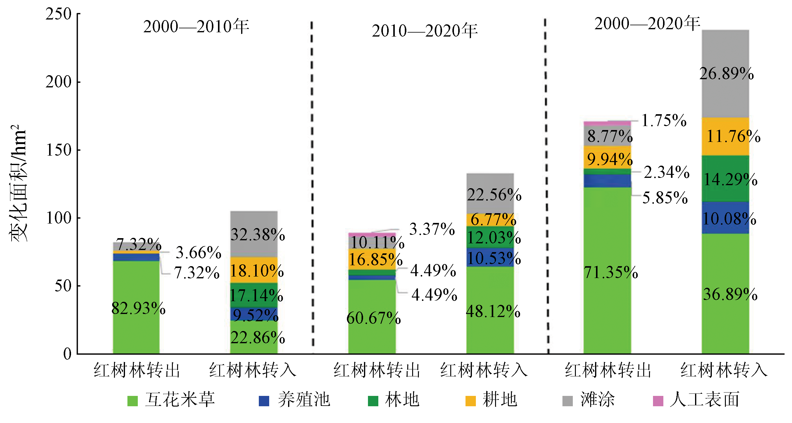 | 图4 研究区红树林与其他土地利用类型间的相互转化 |
