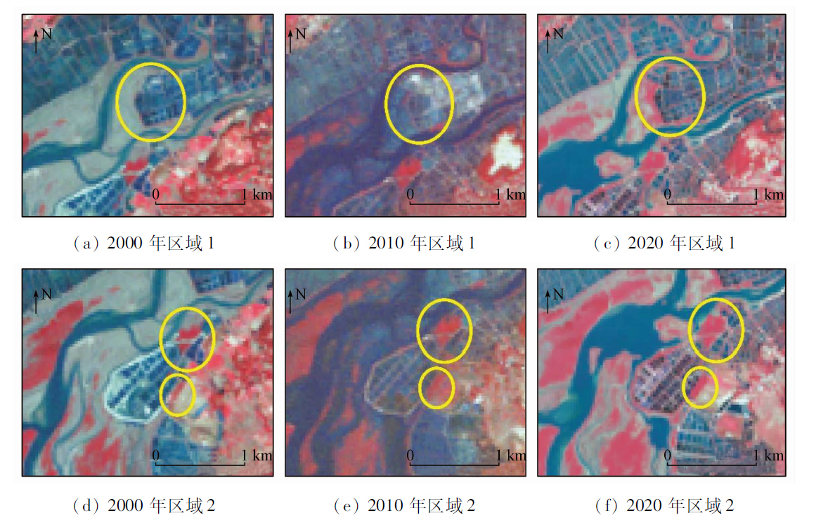 | Fig.8 Changes of mangrove around aquaculture ponds in the study area |