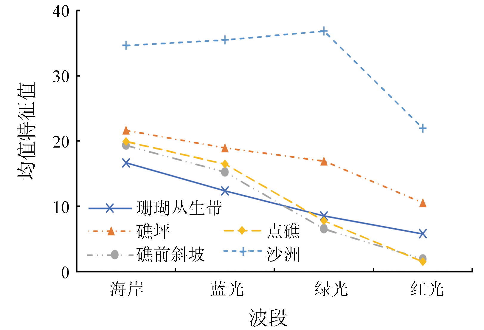 | 图4 珊瑚礁各底质均值纹理特征曲线 |