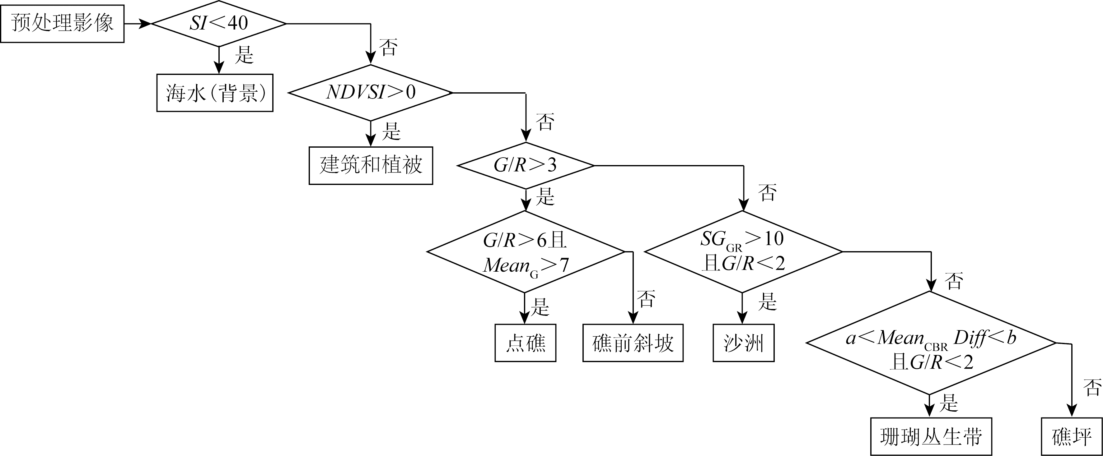| 图5 珊瑚礁底质分类决策树 |