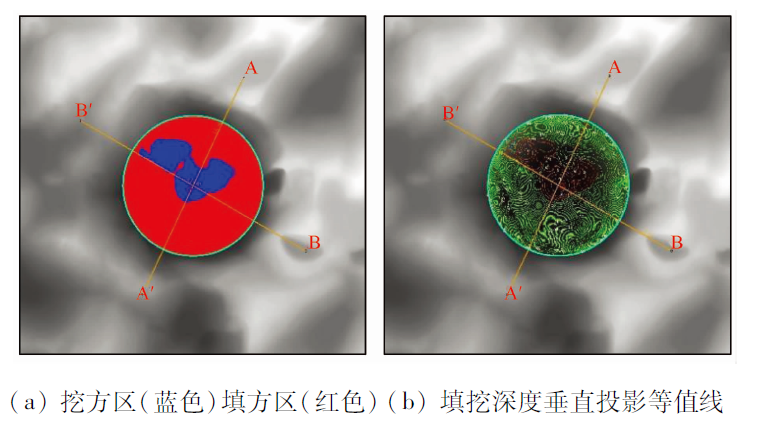 | 图8 某洼地地形-球冠拟合填挖分布图 |