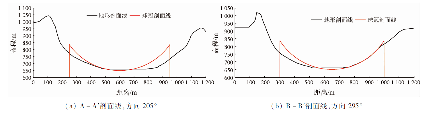 | 图9 某洼地地形-球冠叠合剖面图 |