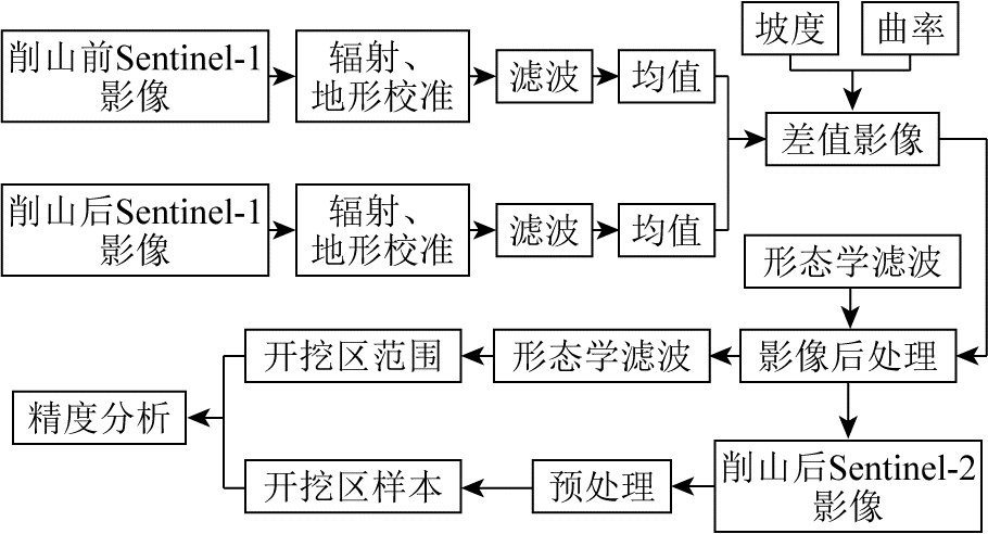 | Fig.1 Technical route for extracting excavation areas from mountain cutting and land reclamation |