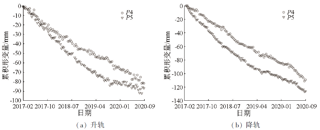 | 图12 官嘴地P4点与小坪子P5点时序形变结果 |