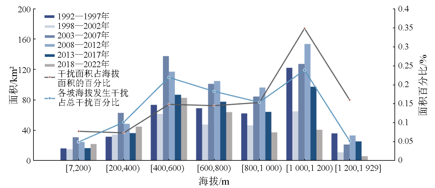 | Fig.9 Forest disturbance at different altitudes in Lishui City |