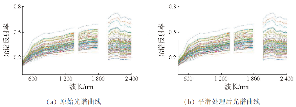 | 图2 原始和Savitzky-Golay平滑处理后的光谱反射率曲线 |