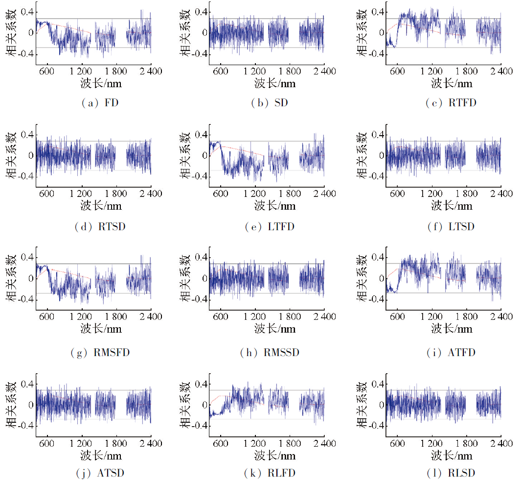 | 图3 土壤As含量与光谱反射率及其变换的相关系数 |