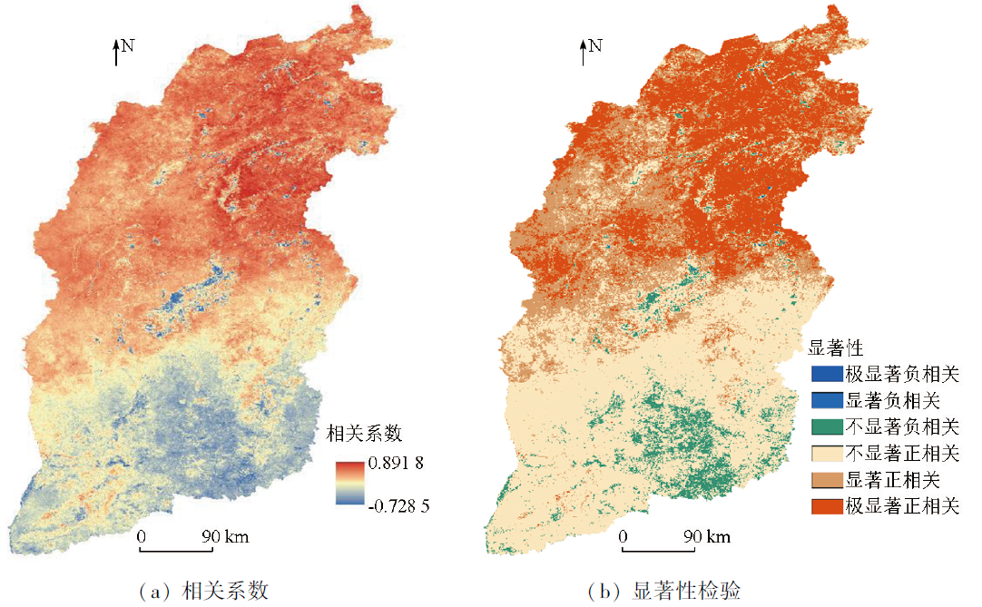 | 图5 年尺度VCI与SPI12的相关系数及显著性检验空间分布 |
