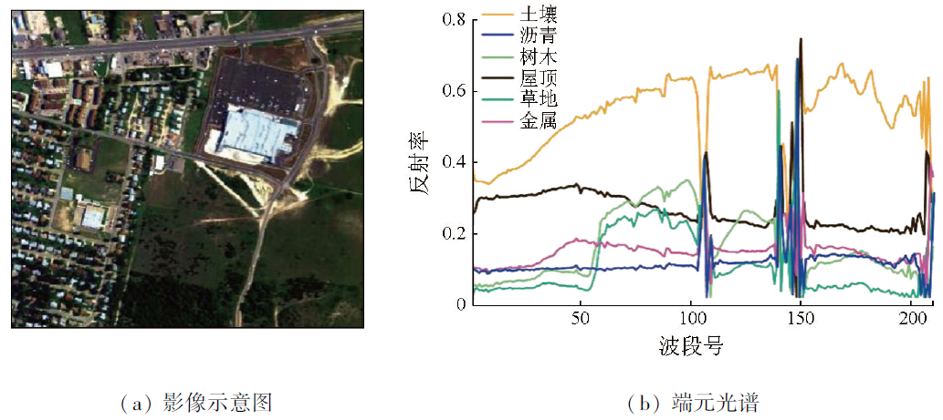 | 图1 高光谱图像及端元光谱 |